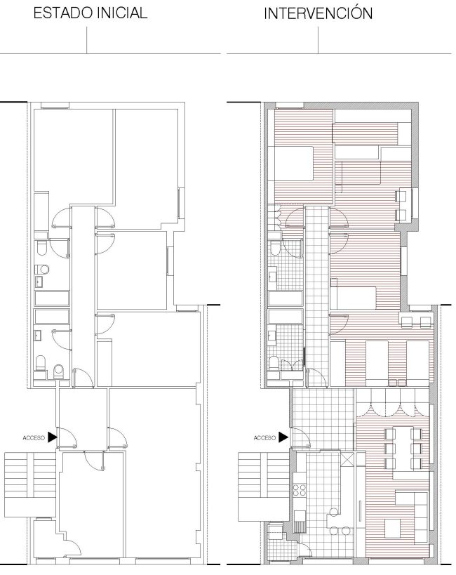 REFORMA DE VIVIENDA / RÚA DO HÓRREO / SANTIAGO DE COMPOSTELA / 2019 Reforma interior de vivienda situada en la 1ª planta de edificio de vivienda colectiva.