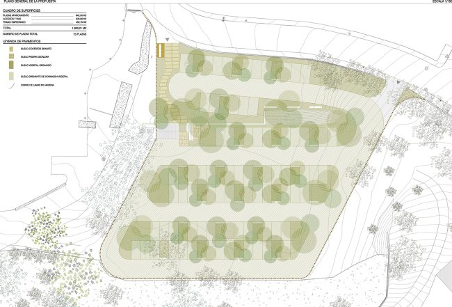 APARCAMIENTO PÚBLICO / CONXO / SANTIAGO DE COMPOSTELA / 2015 Proyecto de adecuación de parcela próxima al hospital de Conxo para uso de aparcamiento público en superficie.
